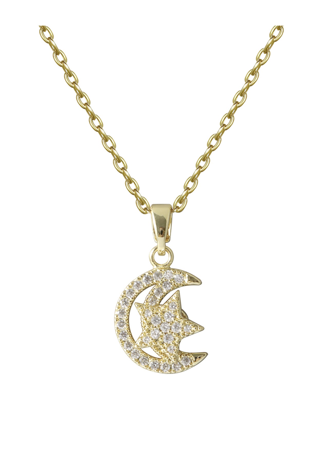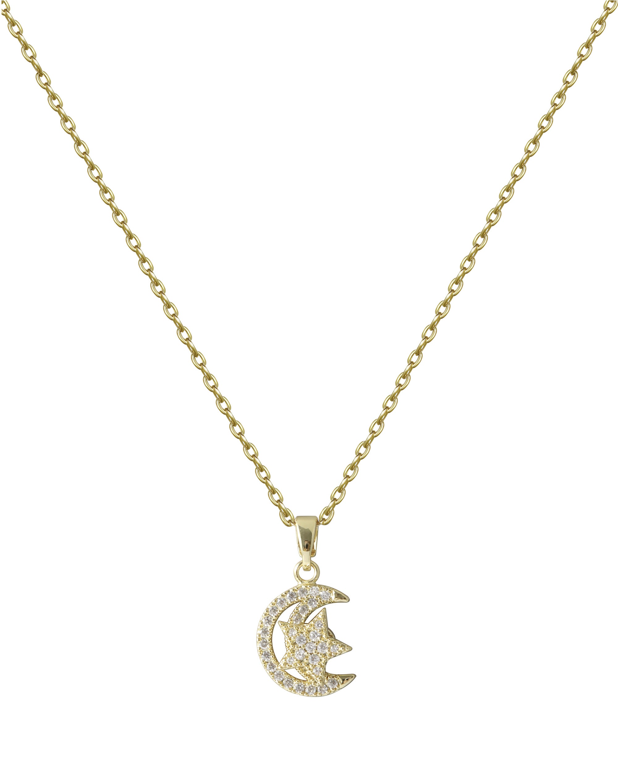COLLIER EN ACIER DORE PENDENTIF LUNE AVEC ETOILE