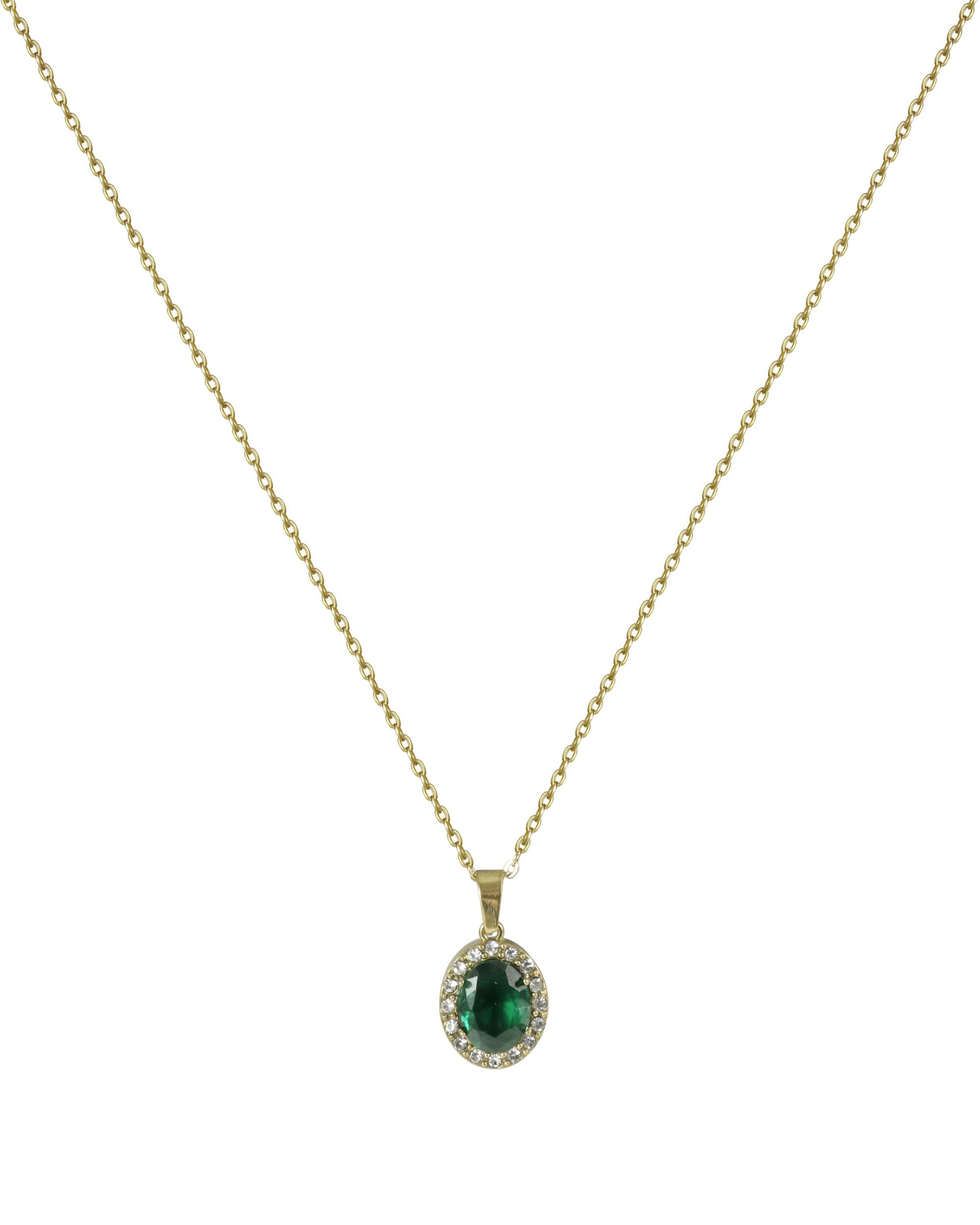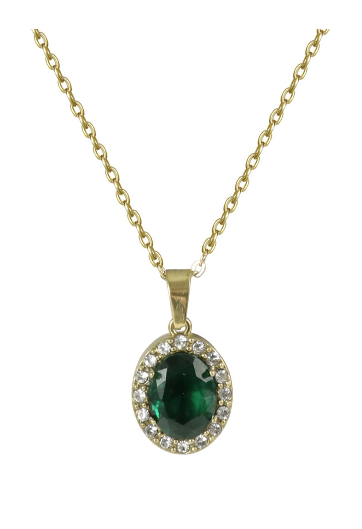 COLLIER EN ACIER DORE PENDENTIF OVALE EMERAUDE AVEC STRASS