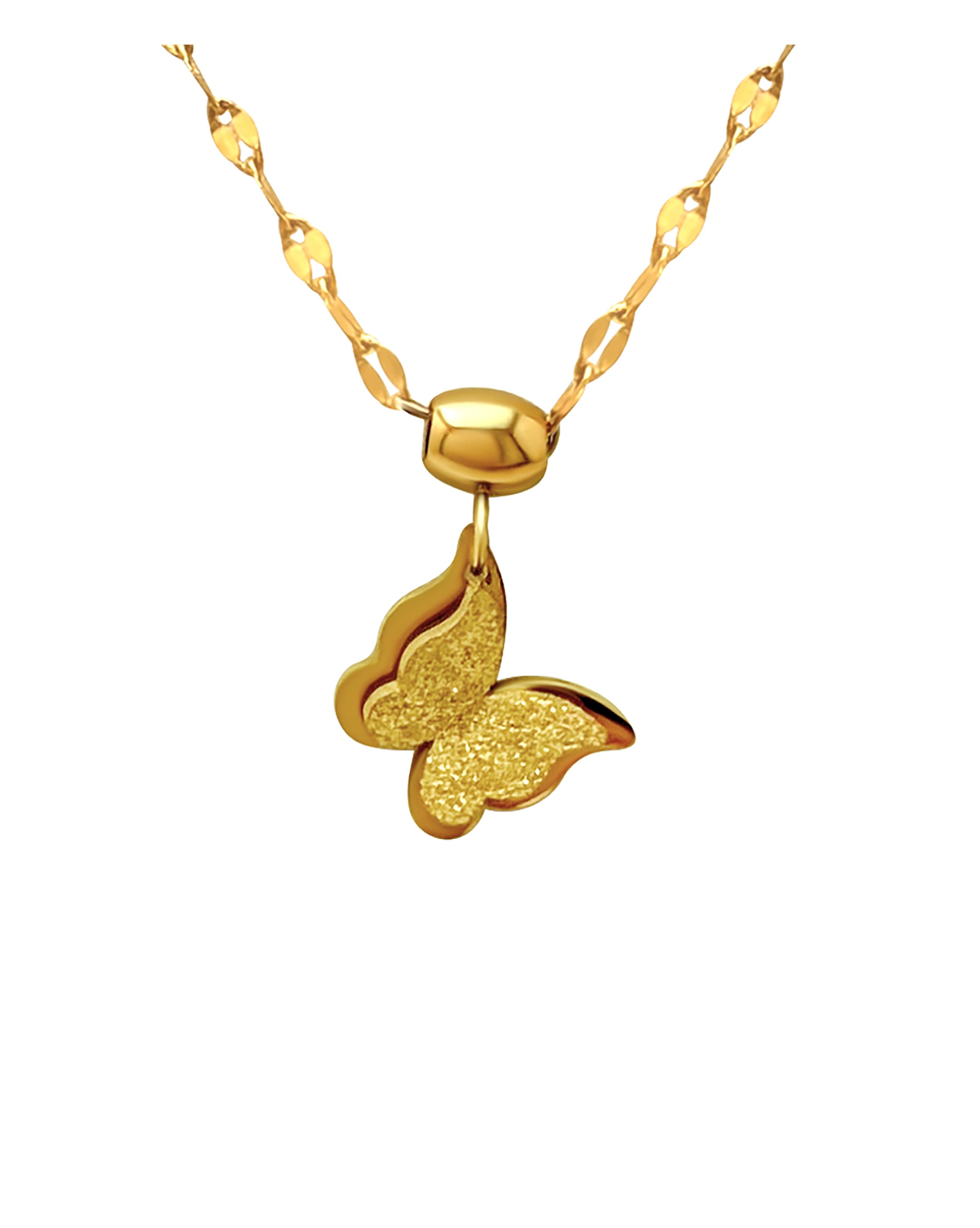 COLLIER EN ACIER DORE PENDENTIF PAPILLON AVEC PAILLETTES