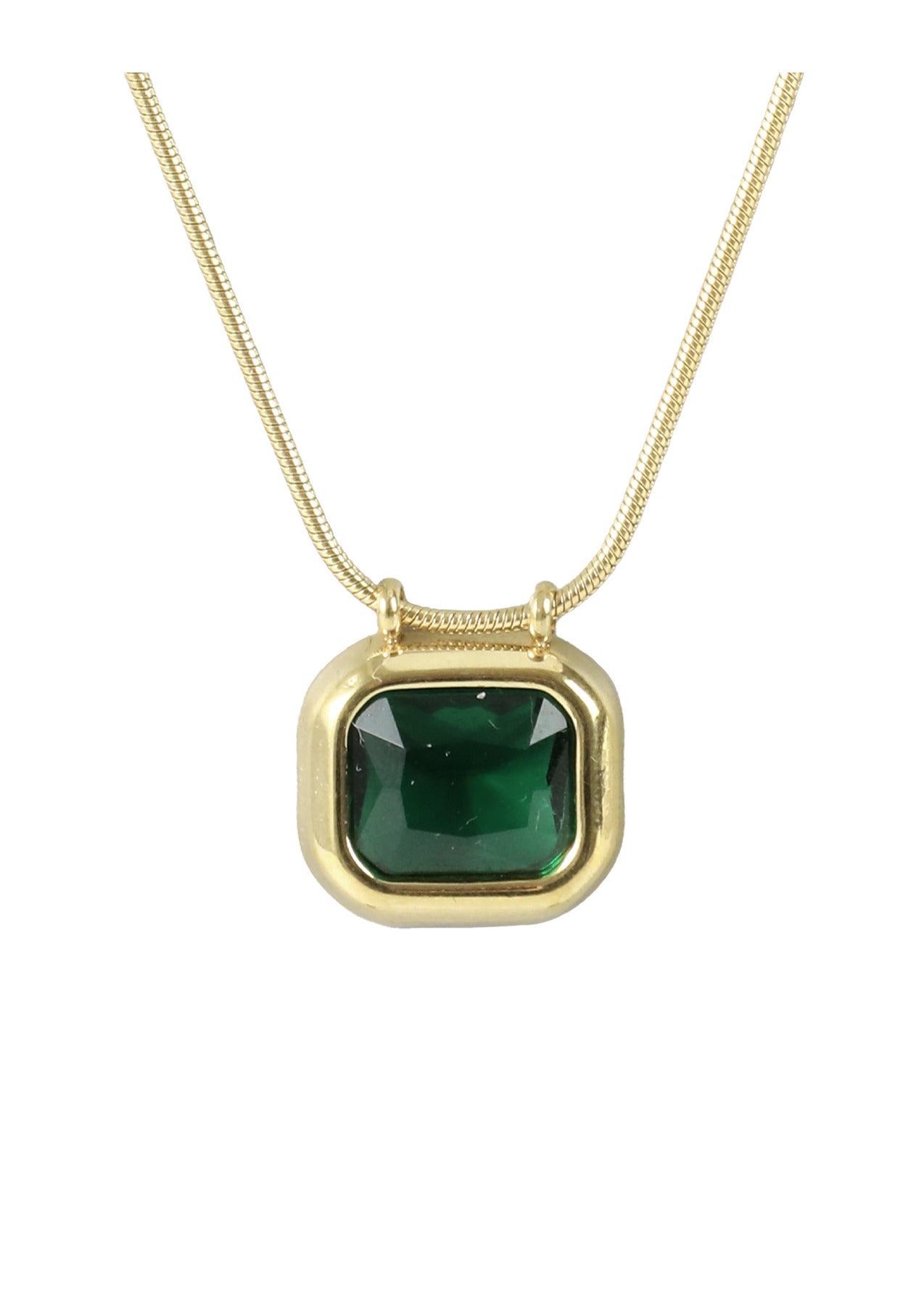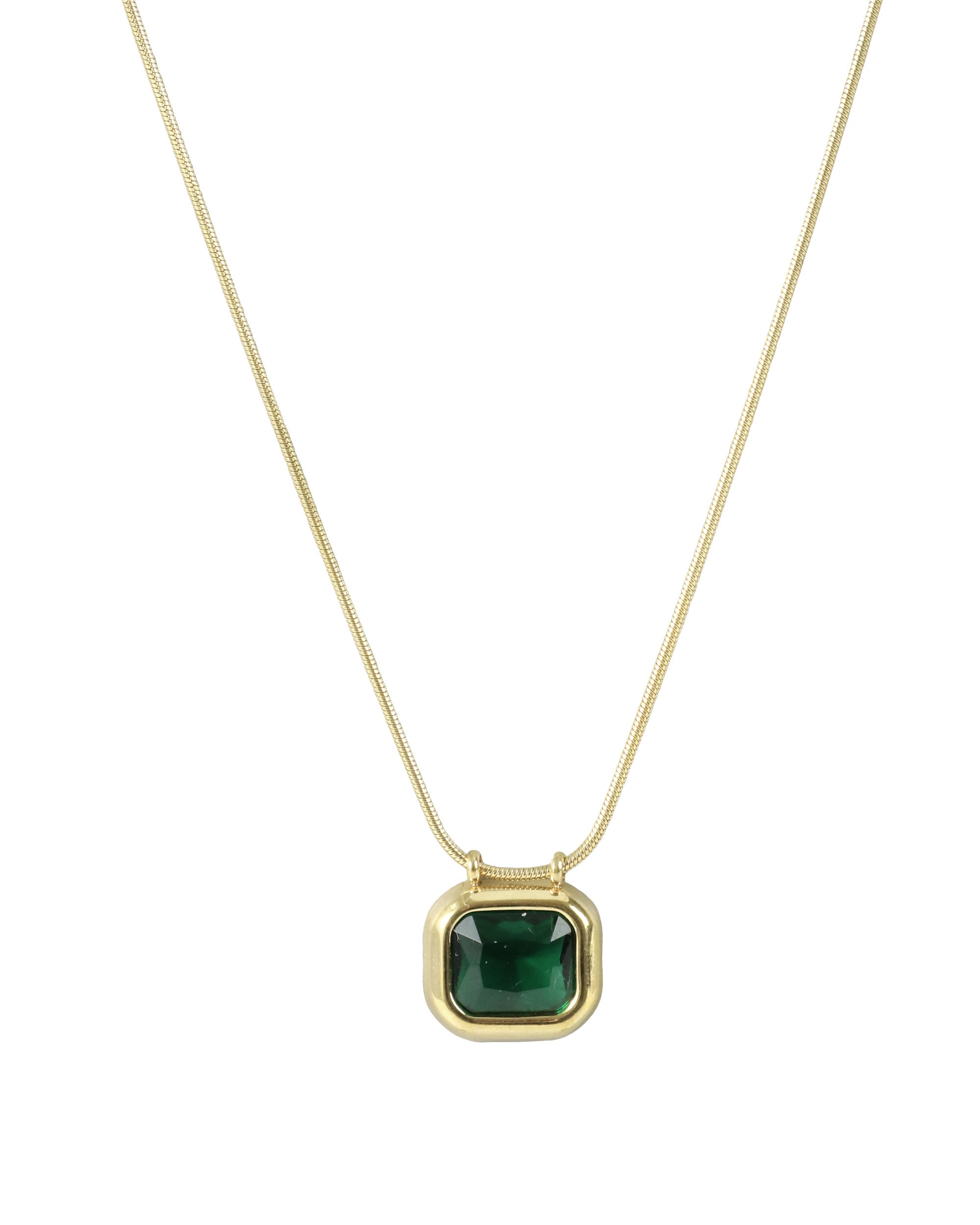 COLLIER EN ACIER DORÉ PENDENTIF RECTANGLE ÉMERAUDE