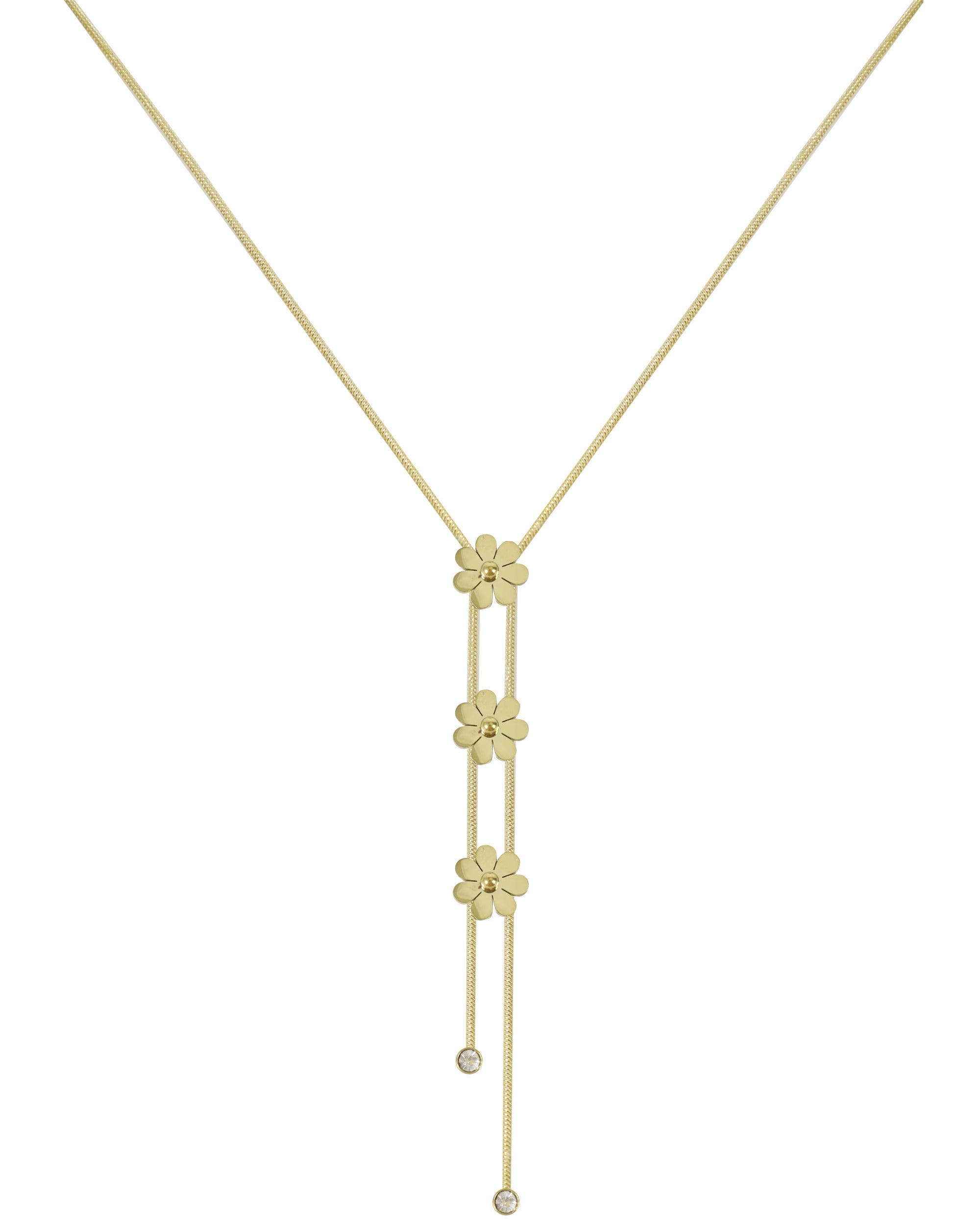 COLLIER EN ACIER DORE TRIO DE FLEURS ET STRASS
