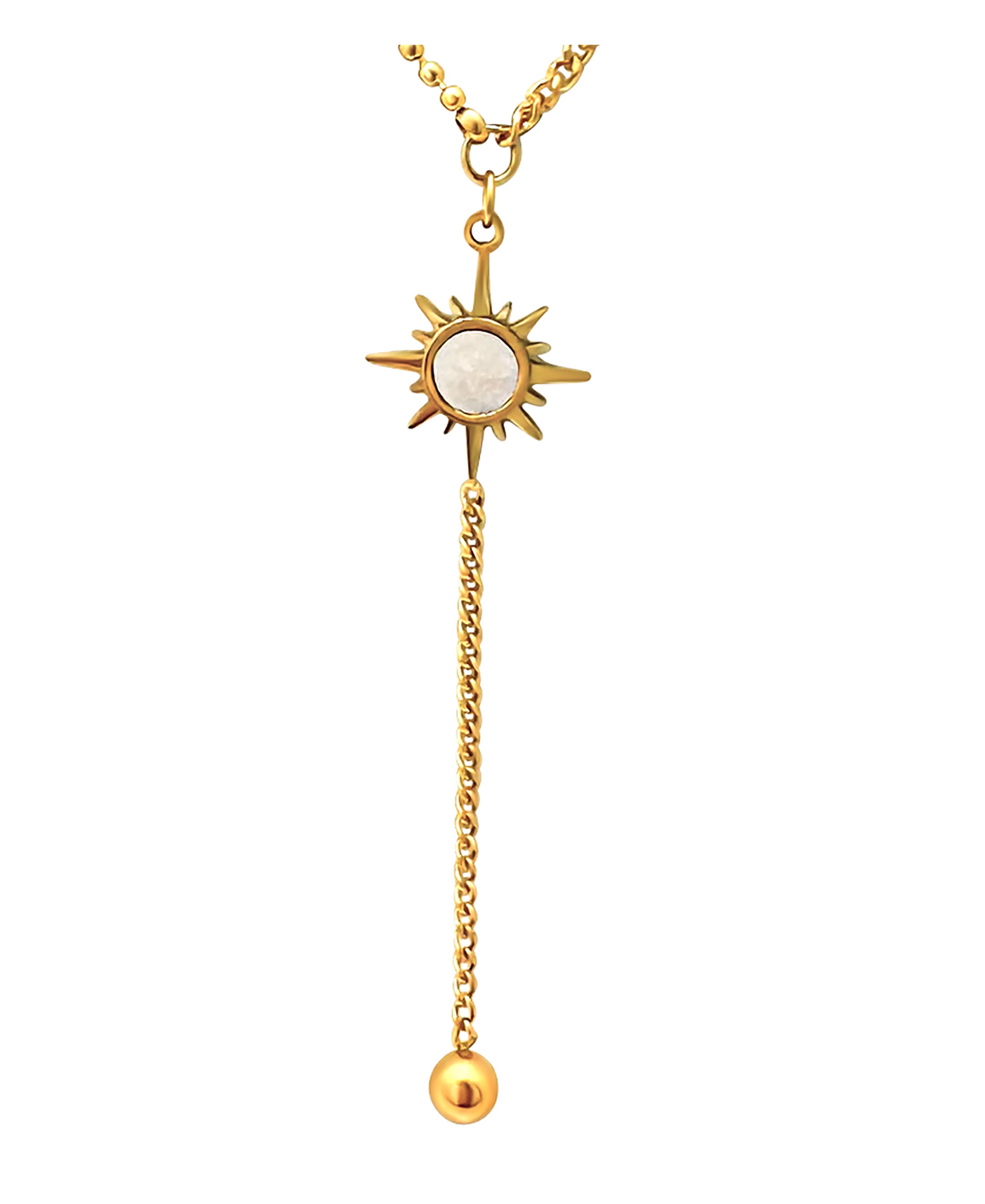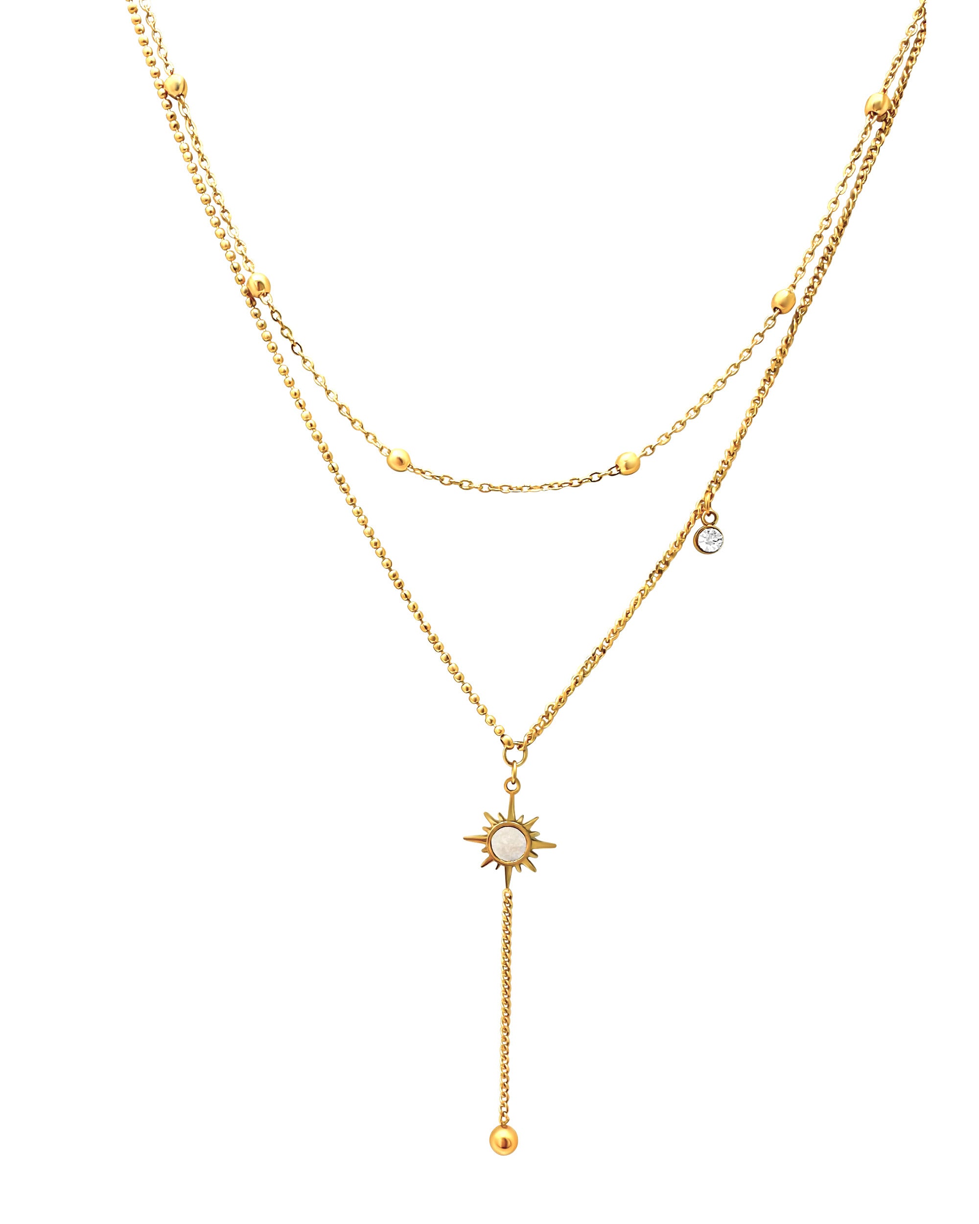 COLLIER EN ACIER DOUBLE MAILLE SOLEIL BILLES ET STRASS