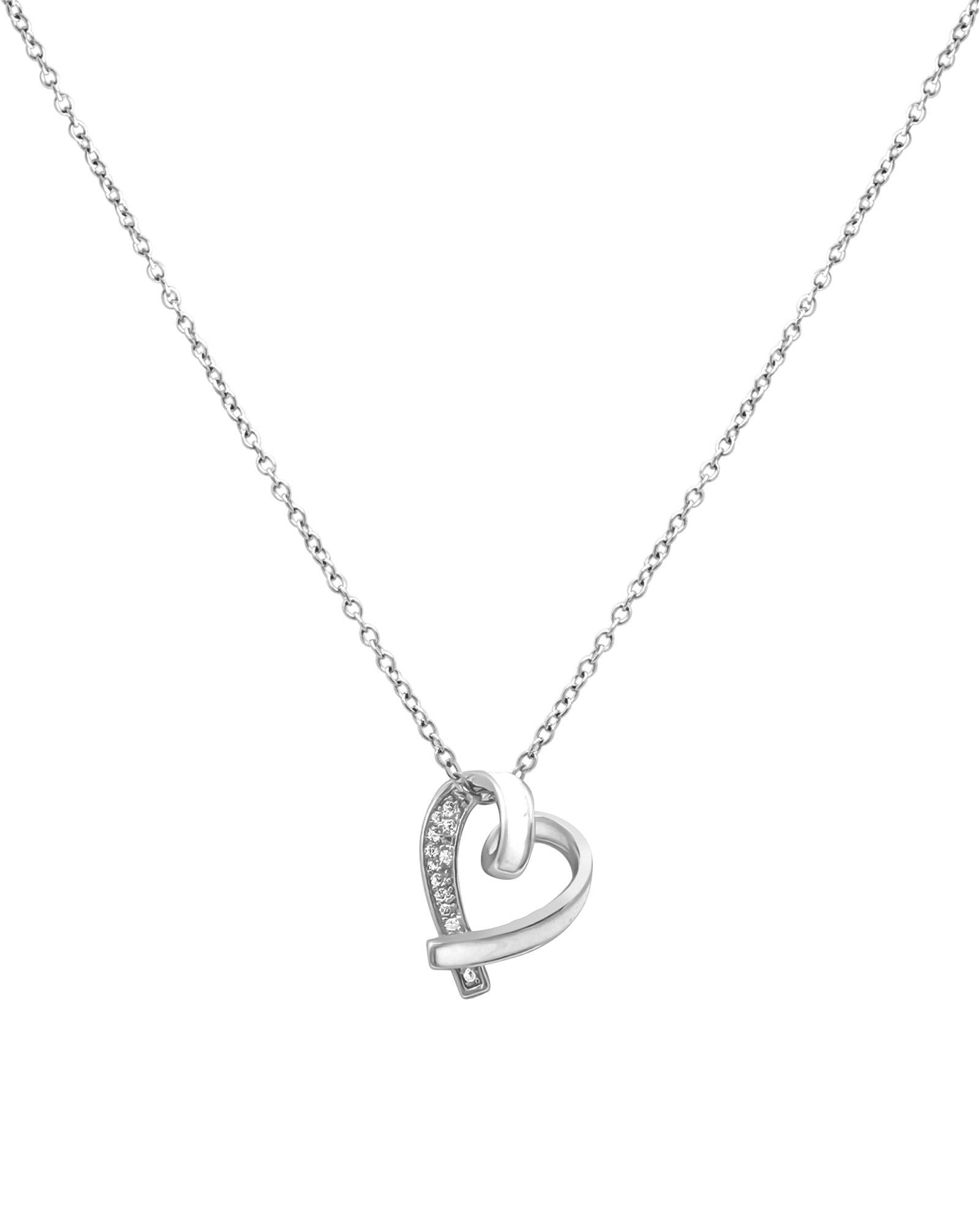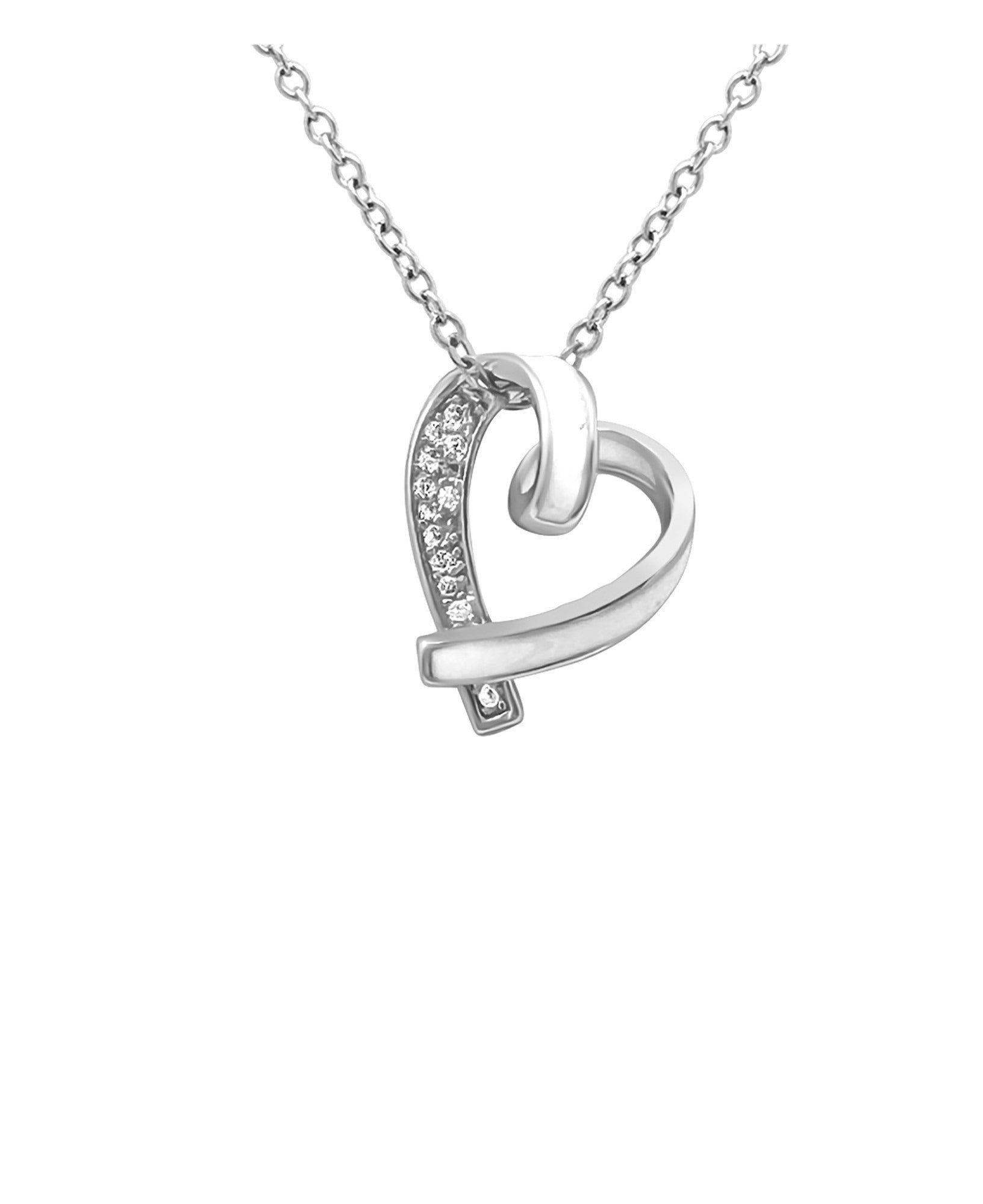 COLLIER EN ACIER PENDENTIF COEUR AVEC EMAIL BLANC ET STRASS