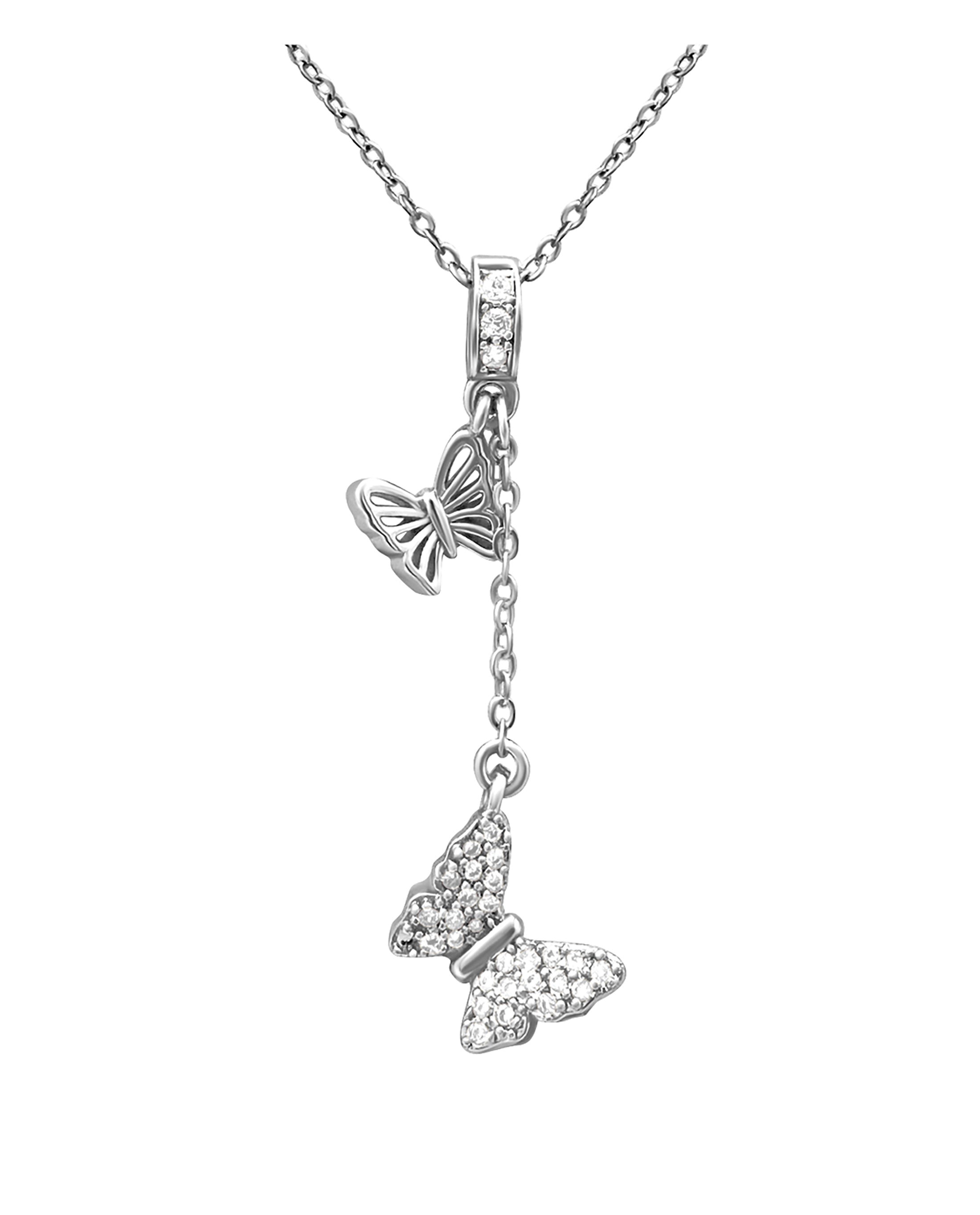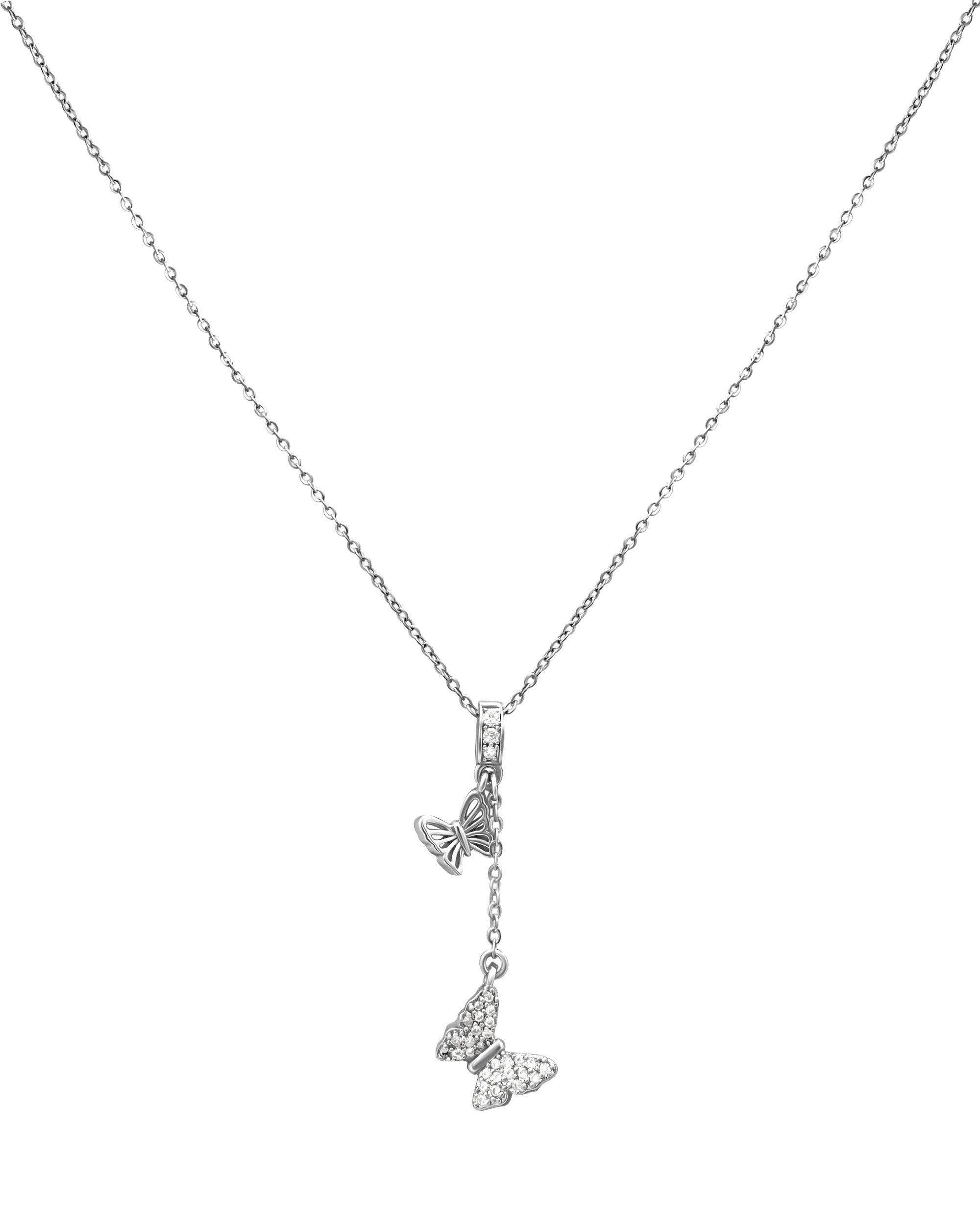 COLLIER EN ACIER PENDENTIF DOUBLE PAPILLONS ET STRASS