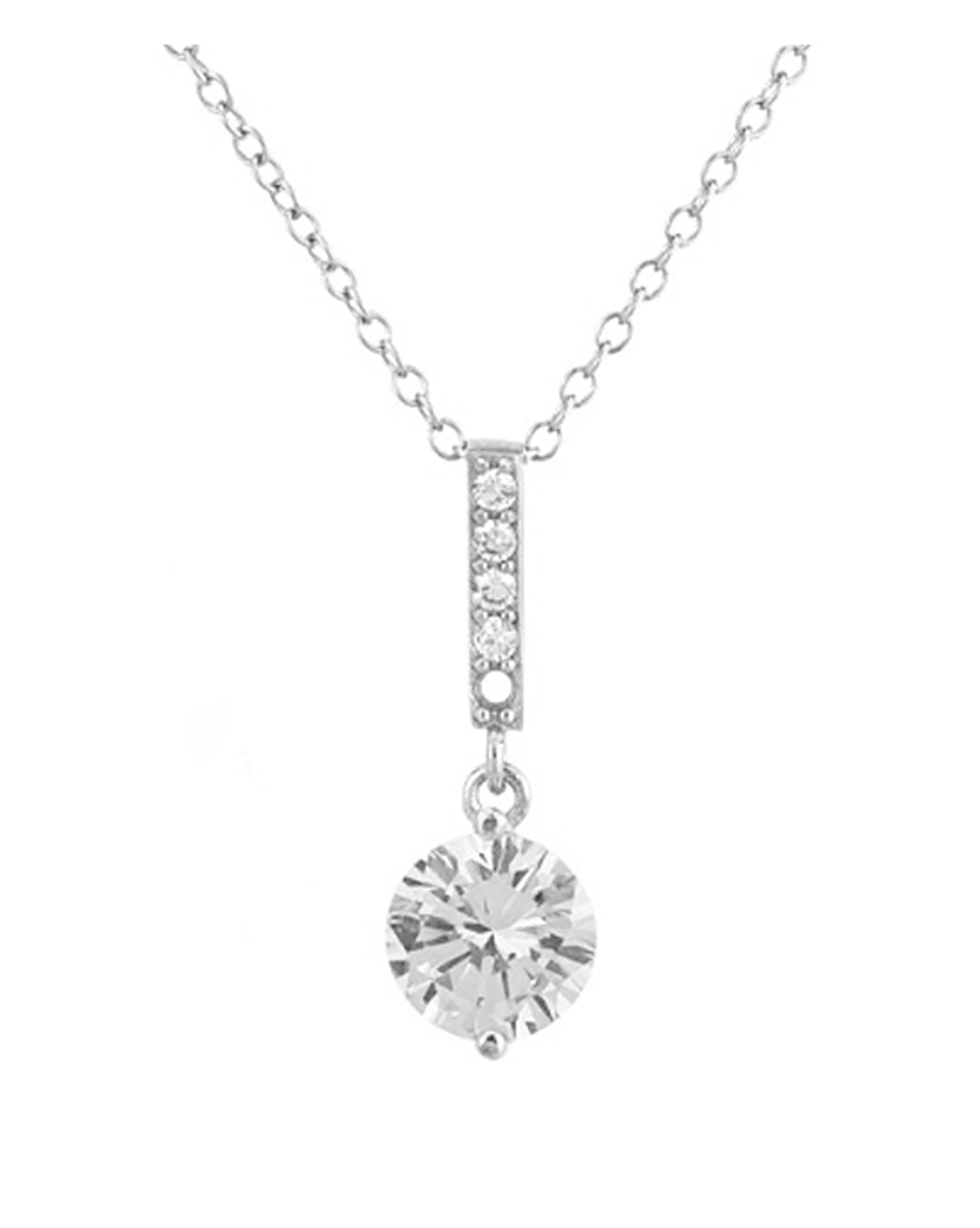 COLLIER EN ARGENT BARRE AVEC PIERRES ET SOLITAIRE