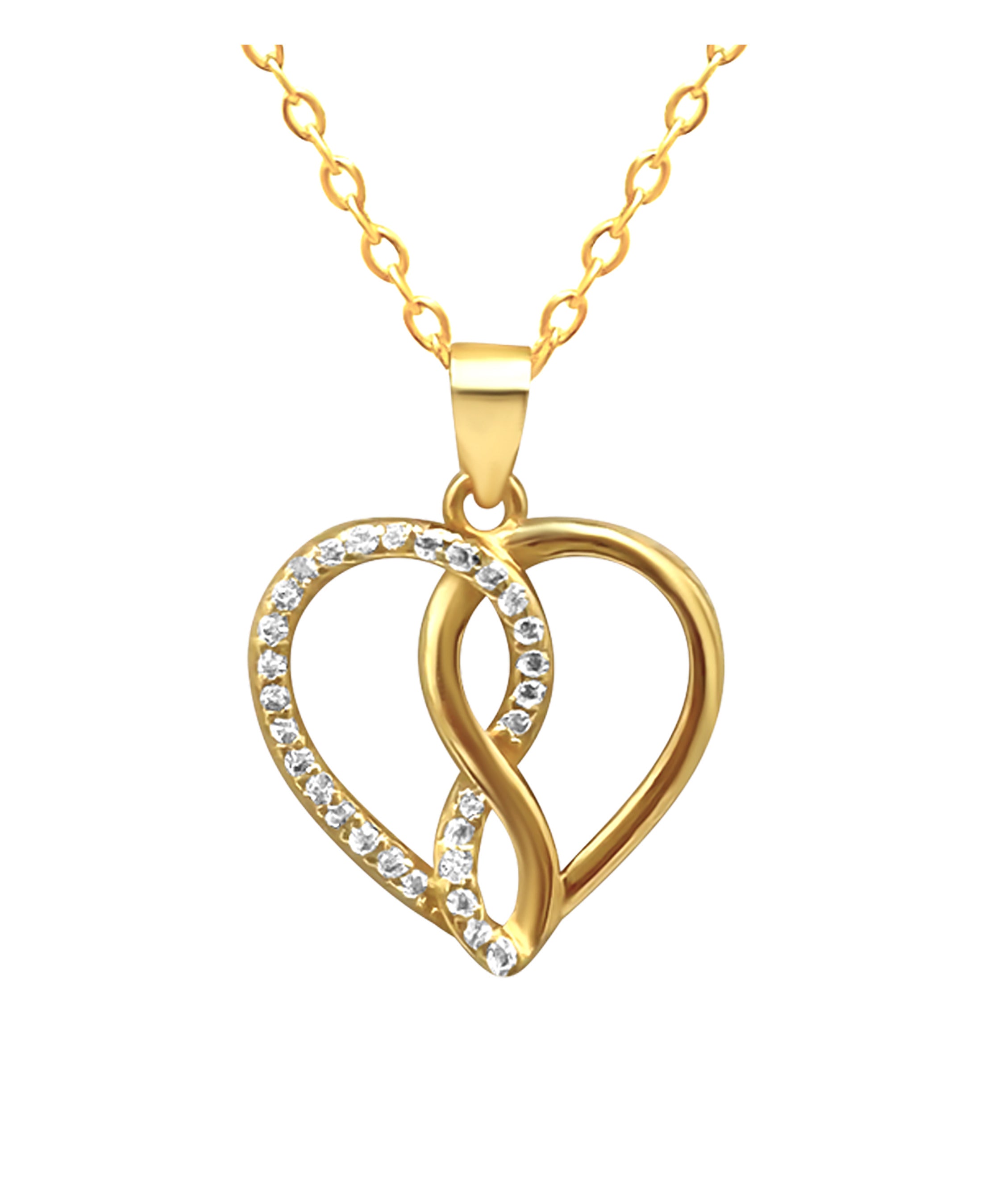 COLLIER EN ARGENT DORE AVEC CŒURS ENLACES ET ZIRCONIUM