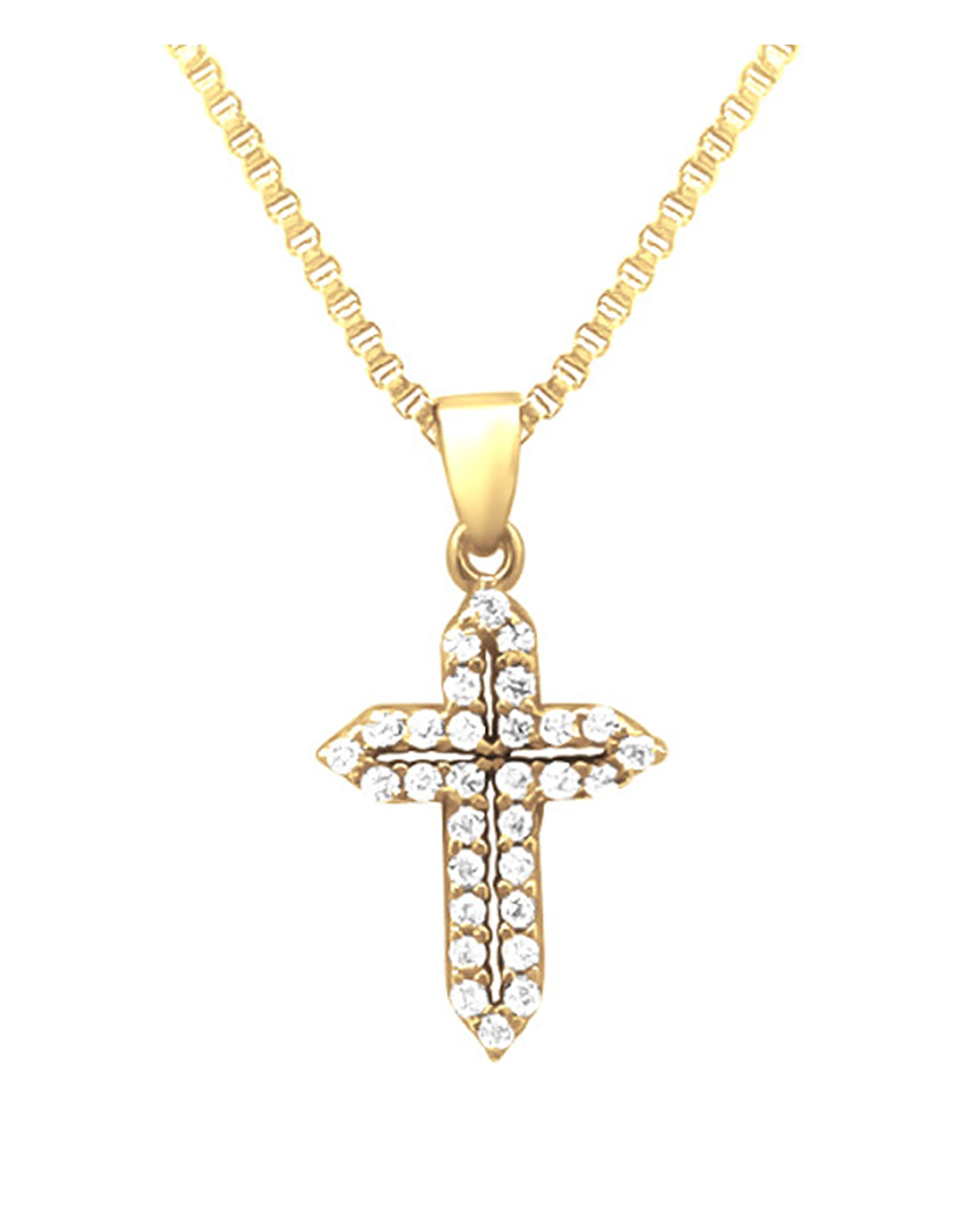 COLLIER EN ARGENT DORE AVEC PENDENTIF CROIX EN ZIRCONIUM
