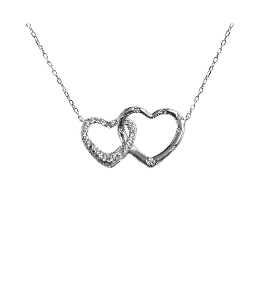 COLLIER EN ARGENT MOTIF 2 COEURS AVEC PIERRES