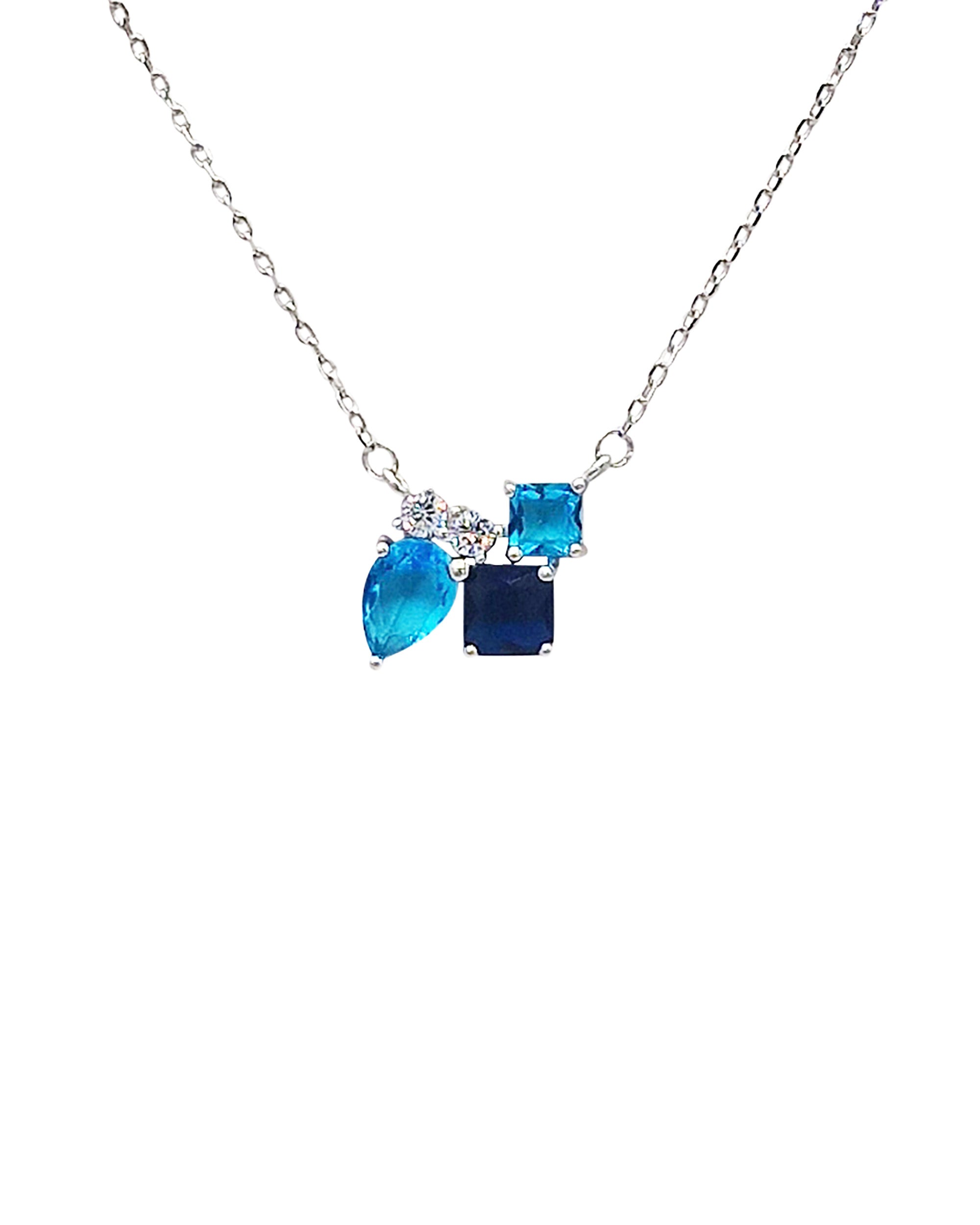 COLLIER EN ARGENT MOTIF AVEC PIERRES BLEUES ET BLANCHES