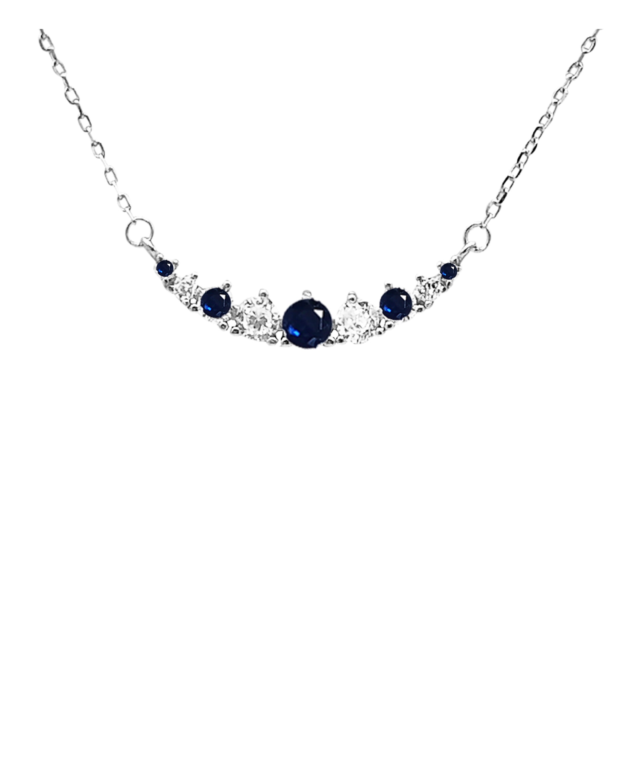 COLLIER EN ARGENT MOTIF COURBE AVEC PIERRES BLANCHES ET BLEUES