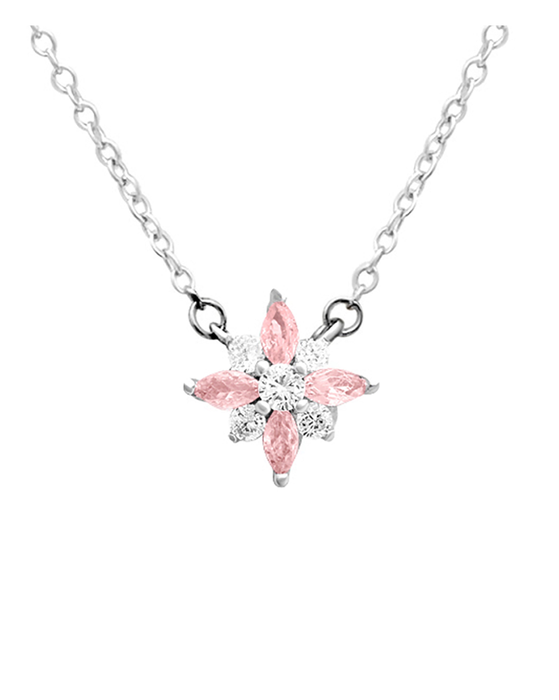 COLLIER EN ARGENT MOTIF FLEUR AVEC ZIRCONIUM BLANCS ET ROSES