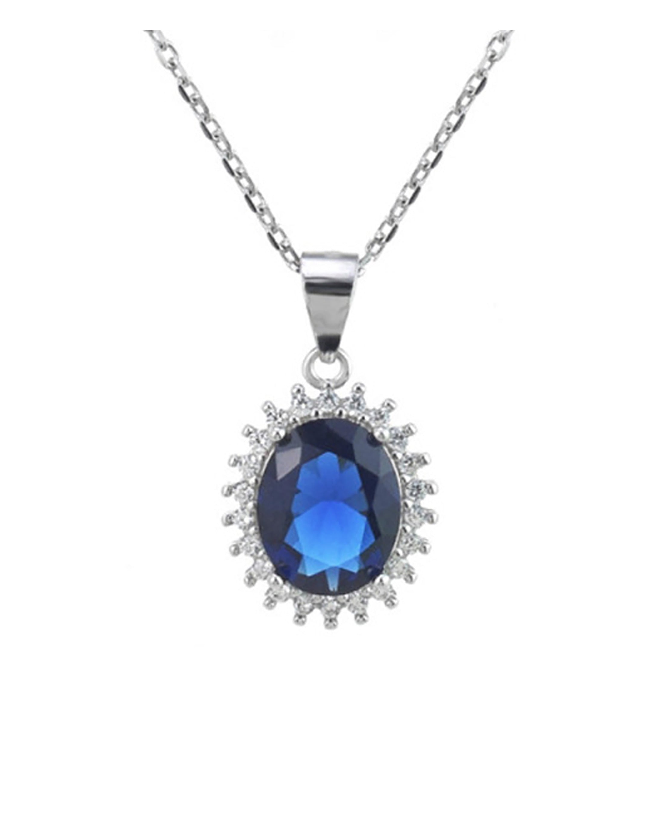 COLLIER EN ARGENT PENDENTIF BLEU AVEC PIERRES