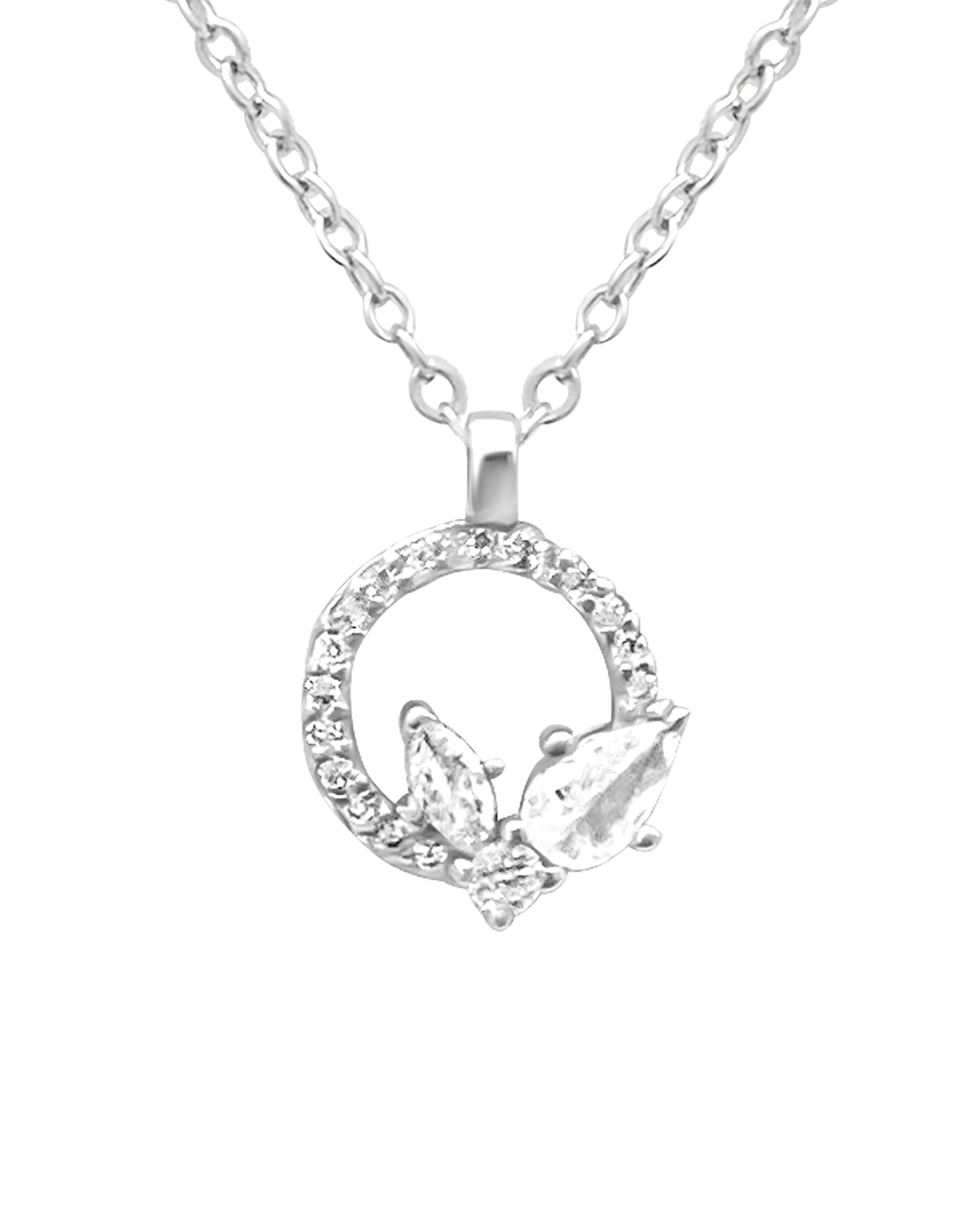 COLLIER EN ARGENT PENDENTIF CERCLE AVEC ZIRCONIUM ET TRIPLE PIERRES