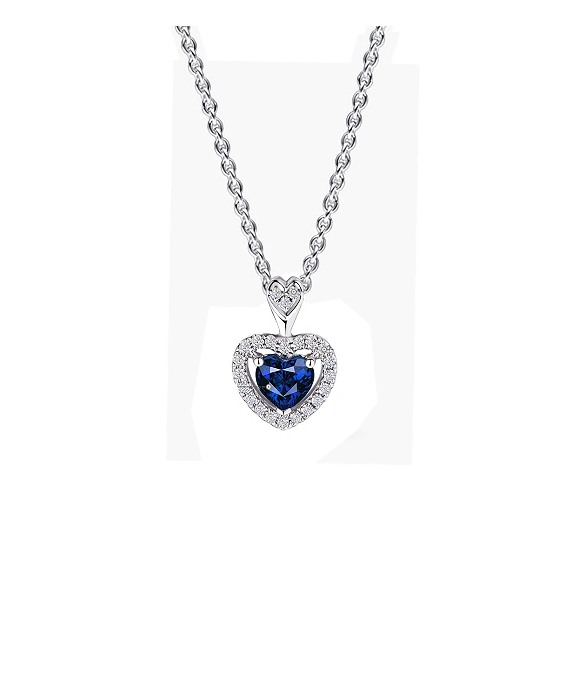 COLLIER EN ARGENT PENDENTIF COEUR BLEU ET PIERRES