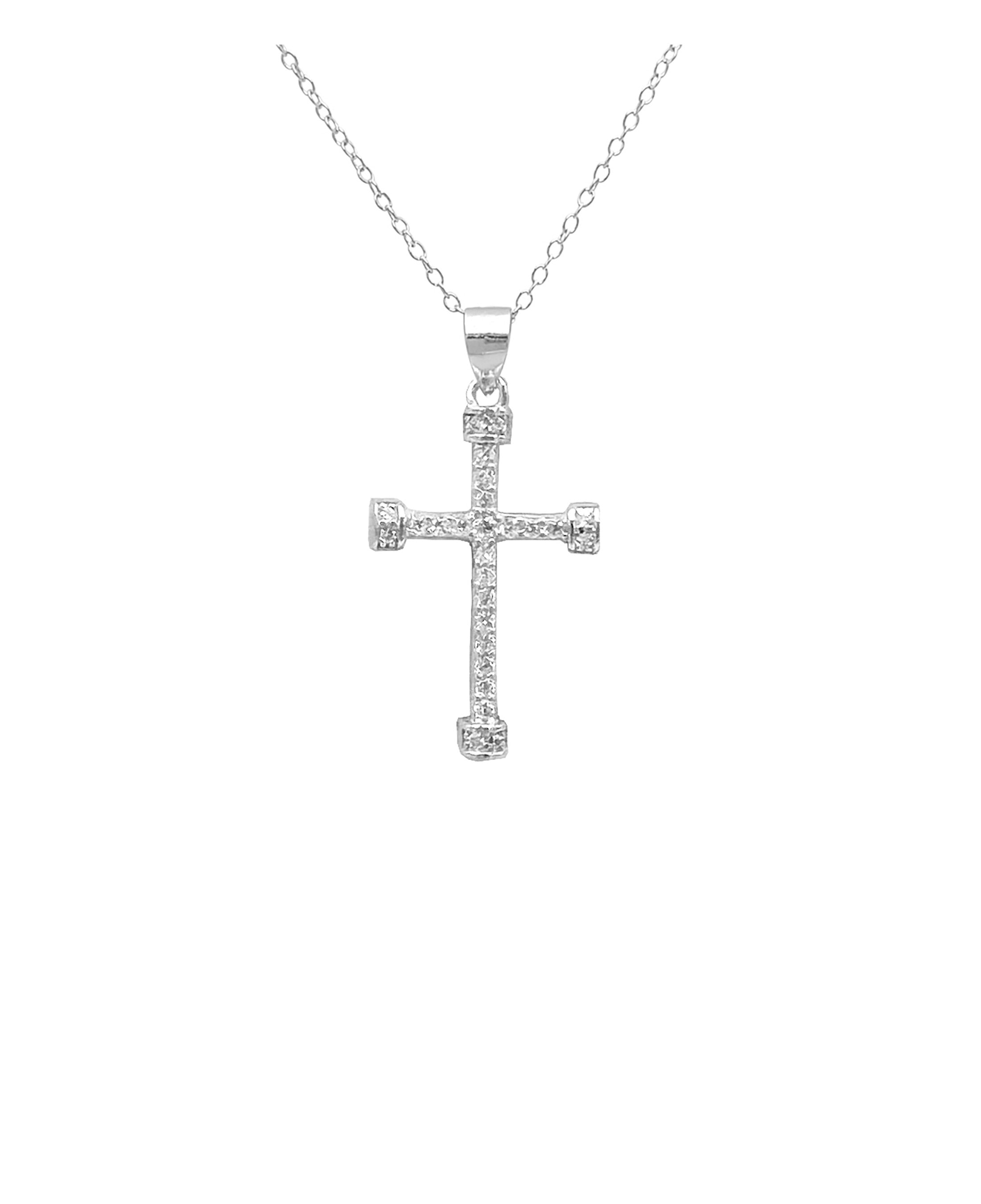 COLLIER EN ARGENT PENDENTIF CROIX AVEC PIERRES