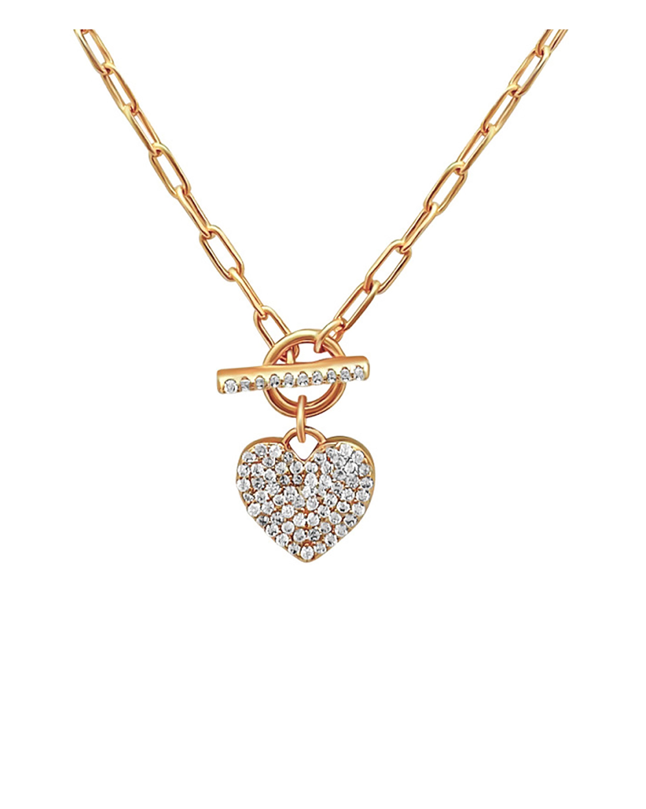 COLLIER EN PLAQUE OR AVEC COEUR ET ZIRCONIUM FERMOIR BARRE