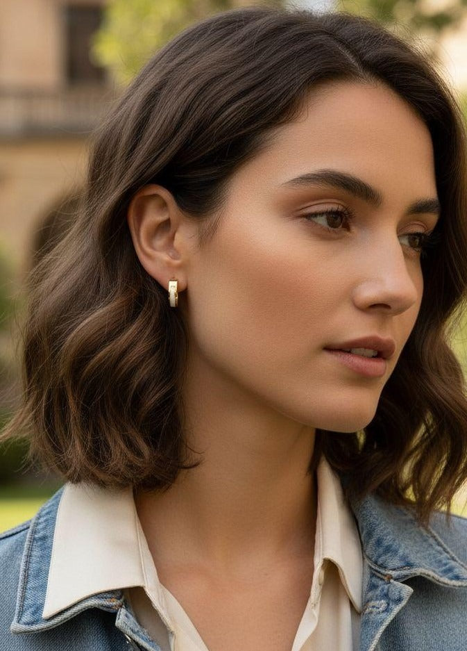 Perçage d’oreilles professionnel, sûr et hygiénique chez VENIZI — service offert, boucles hypoallergéniques et conseils personnalisés pour une cicatrisation parfaite.