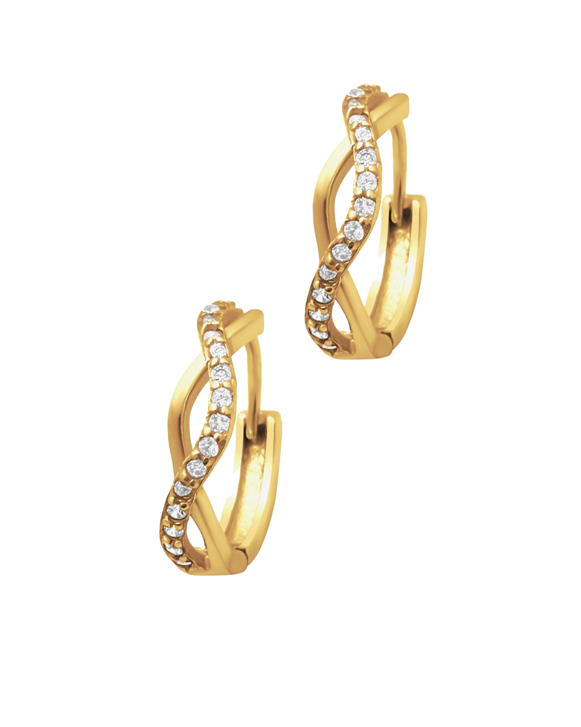 CREOLES EN ARGENT DORE DOUBLE VAGUE ET ZIRCONIUM