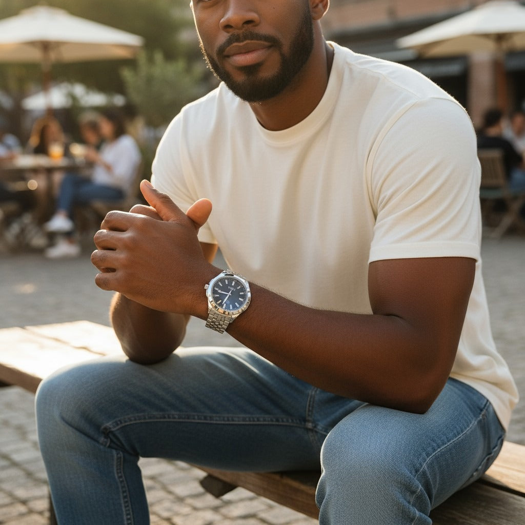 Montre Venizi argentée avec cadran bleu nuit