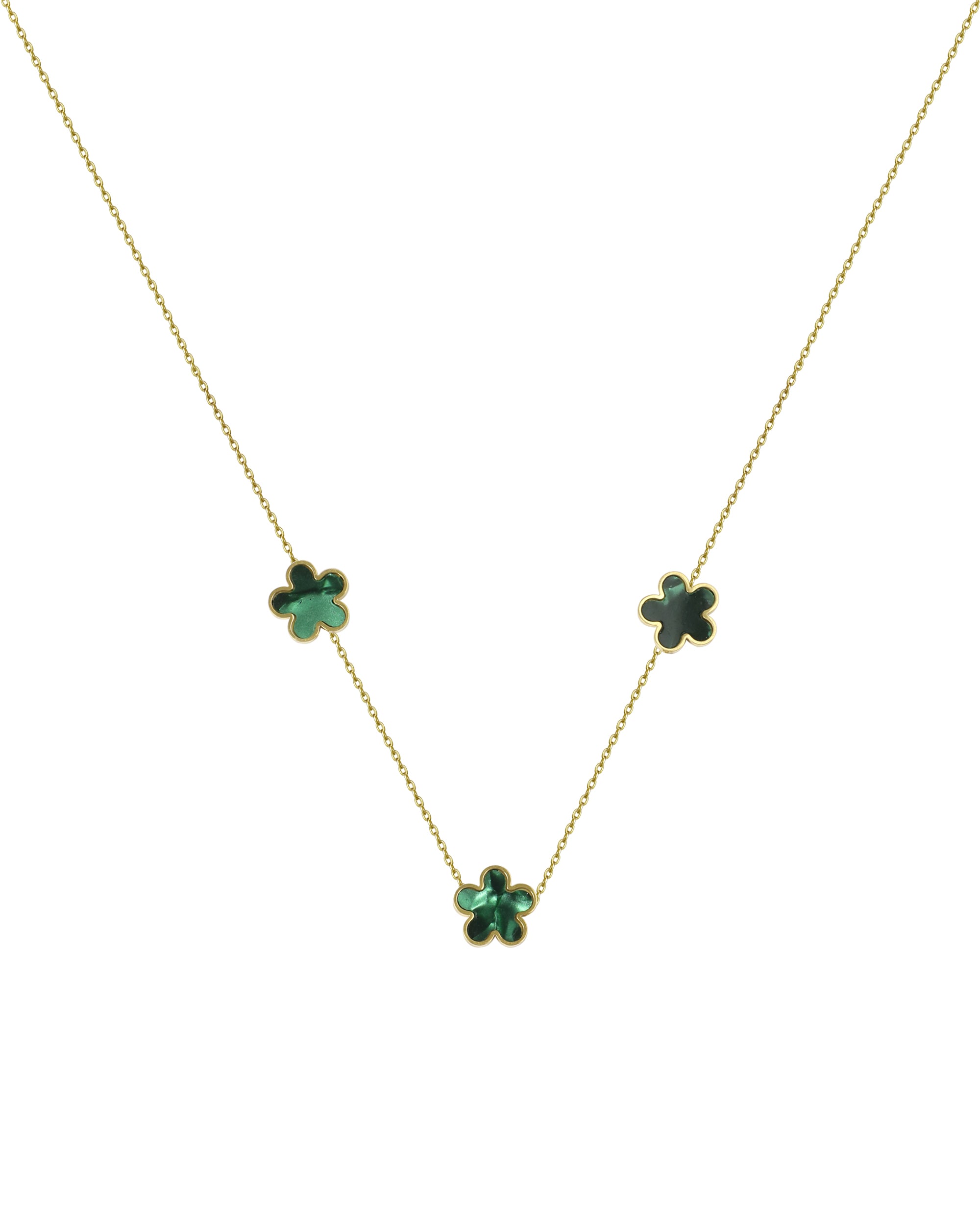 PARURE EN ACIER DORE AVEC FLEUR NACRE COULEUR EMERAUDE