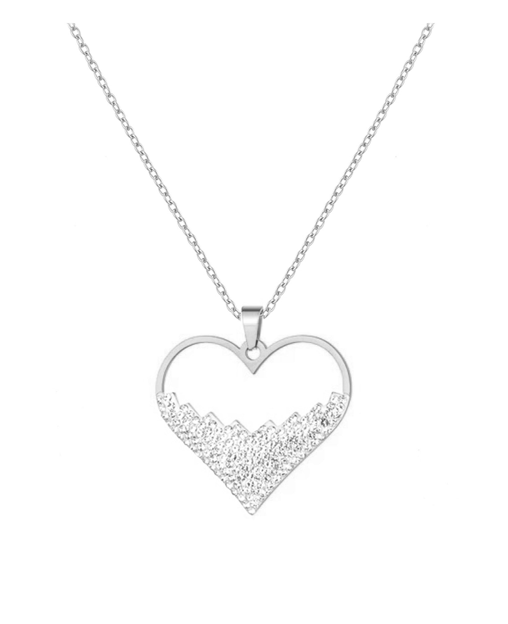 PARURE EN ACIER PENDENTIF COEUR AVEC STRASS